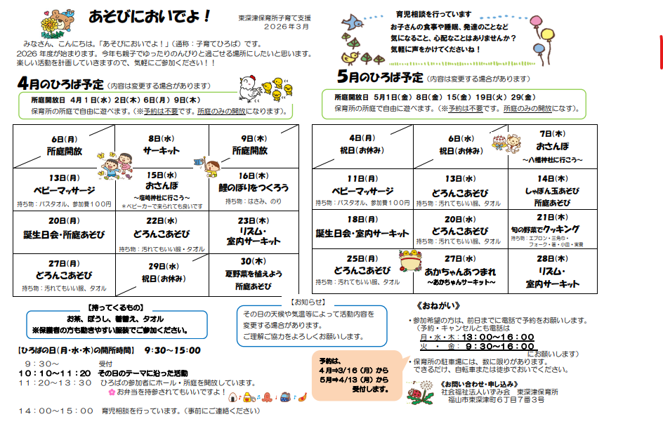 あそびにおいでよ!!2026年4-5月の予定