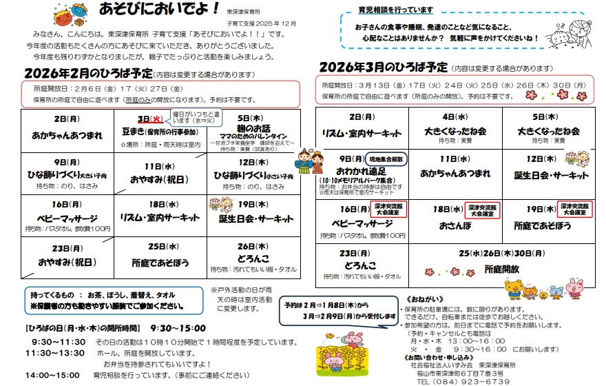あそびにおいでよ!!2026年2-3月の予定